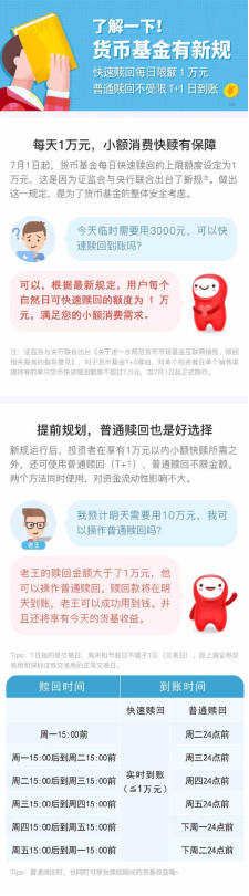 3.贖回快:1萬元以內(nèi)贖回實(shí)時(shí)到賬,1萬元以上贖回T+1日到賬