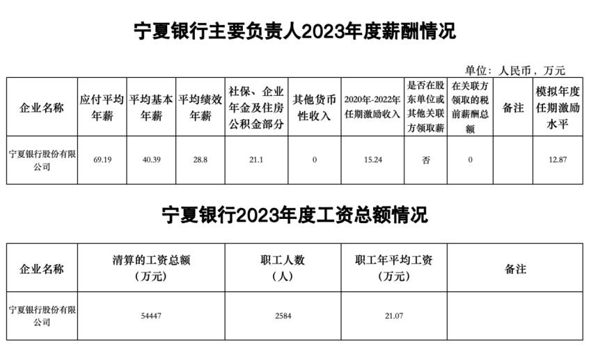 寧夏銀行關(guān)于2023年度主要負(fù)責(zé)人薪酬和工資總額信息的公示